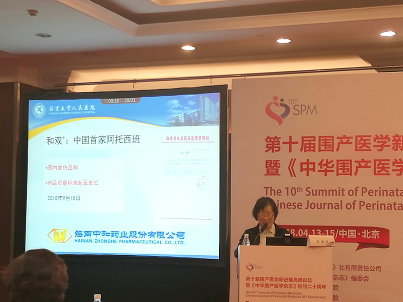 海南中和藥業(yè)股份有限公司攜重磅產(chǎn)品“和雙?醋酸阿托西班注射液”亮相本次會議,獲得全國圍產(chǎn)醫(yī)生的廣泛關(guān)注。并特邀北京大學(xué)第一醫(yī)院時(shí)春艷教授主持,由北京大學(xué)人民醫(yī)院張曉紅教授主講專題講座《早產(chǎn)的宮縮抑制劑臨床應(yīng)用》。張教授先從早產(chǎn)的流行病學(xué)開始切入主題,WHO指南及中國的早產(chǎn)指南2014版列入的宮縮抑制劑主要有:①選擇性宮縮抑制劑:和雙?阿托西班;②β2腎上腺素受體興奮劑:利托君;③鈣通道阻滯劑:硝苯地平;④前列腺素合成酶抑制劑 :吲哚美辛;硫酸鎂只作為32周前的神經(jīng)保護(hù)劑使用。張教授認(rèn)為在維持/重復(fù)應(yīng)用宮縮抑制劑中,和雙?醋酸阿托西班注射液對改善結(jié)局有顯著性差異。利托君/硝苯地平與安慰劑組對比,無顯著性差異。和雙?醋酸阿托西班注射液安全性好,應(yīng)為宮縮抑制劑的最佳選擇。